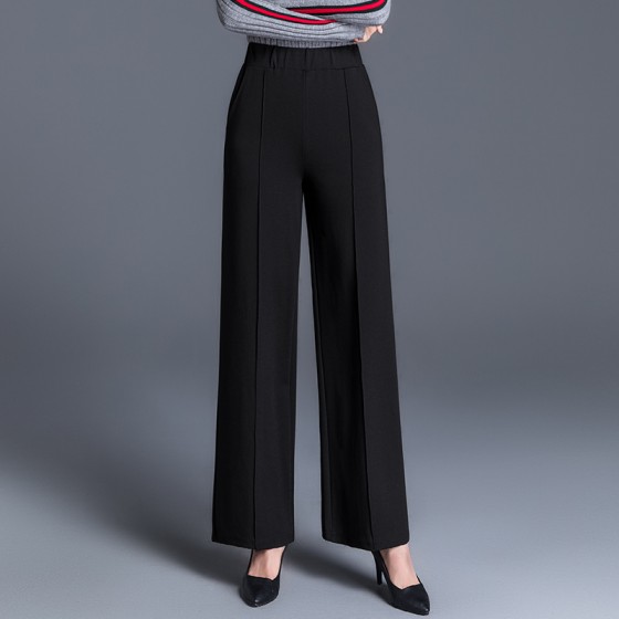 Solid High Waist Straight Leg Pants, Casual Draped Pocket Pants, Women's Clothing