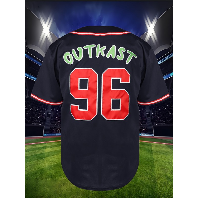 Men's #96 "ATLANTA OUTKAST" Embroidered Baseball Jersey - Breathable Polyester, V-Neck, Button Closure, Casual & Sporty, Ideal for Training, Hiking & Casual Attire in Spring/Summer/Fall